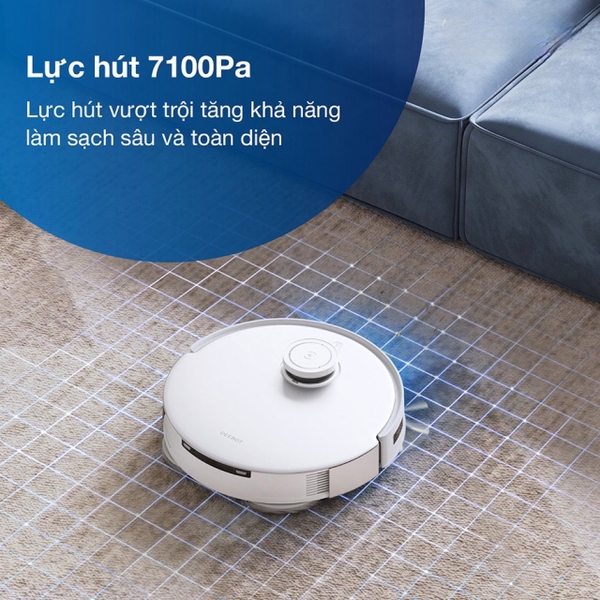 Lực hút 7100Pa mạnh mẽ tăng cường khả năng hút bụi trên thảm, đảm bảo hiệu suất hút bụi trên sàn vượt trội hơn. Robot hút bụi lau nhà Ecovacs Deebot T20e Omni khuấy động thảm một cách mạnh mẽ để giải phóng lượng bụi bẩn lớn hơn và đẩy bụi vào dòng khí chân không. Hơn nữa, tóc rối bám trên bàn chải dễ dàng được gỡ bỏ và làm sạch tiện lợi hơn.